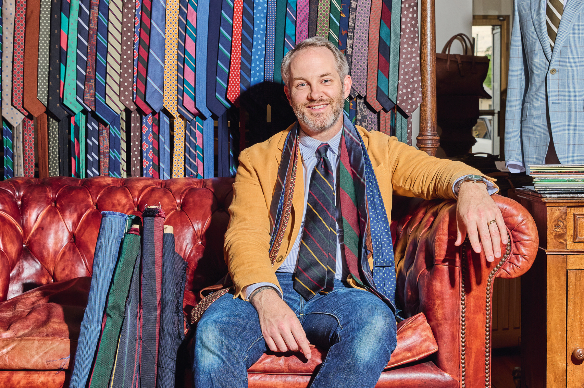 Handmade in the USA from Italian silk, this four-in-hand tie measures 58-60" long and 3.25" wide. Double-faced construction with slip-stitching and a signature red "X" bar tack ensure lasting quality.